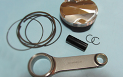 Dieses hochwertige Pleuel wird aus einem Schmiedestück gefräst und in einem besonderen Verfahren vergütet. Dadurch wird eine hohe Standfestigkeit erreicht. Hochwertige Schrauben mit extremer Festigkeit verbinden das zweigeteilte Pleuel. Das geringe Gewicht des Pleuels ist ein zusätzlicher Vorteil zur Drehzahlsteigerung im Rennsport.